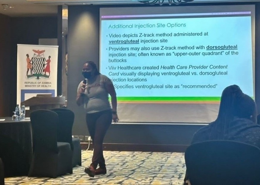 Ciheb Zambia Technical Director Linah Mwango teaching on the injection skills for CAB-LA implementation..
